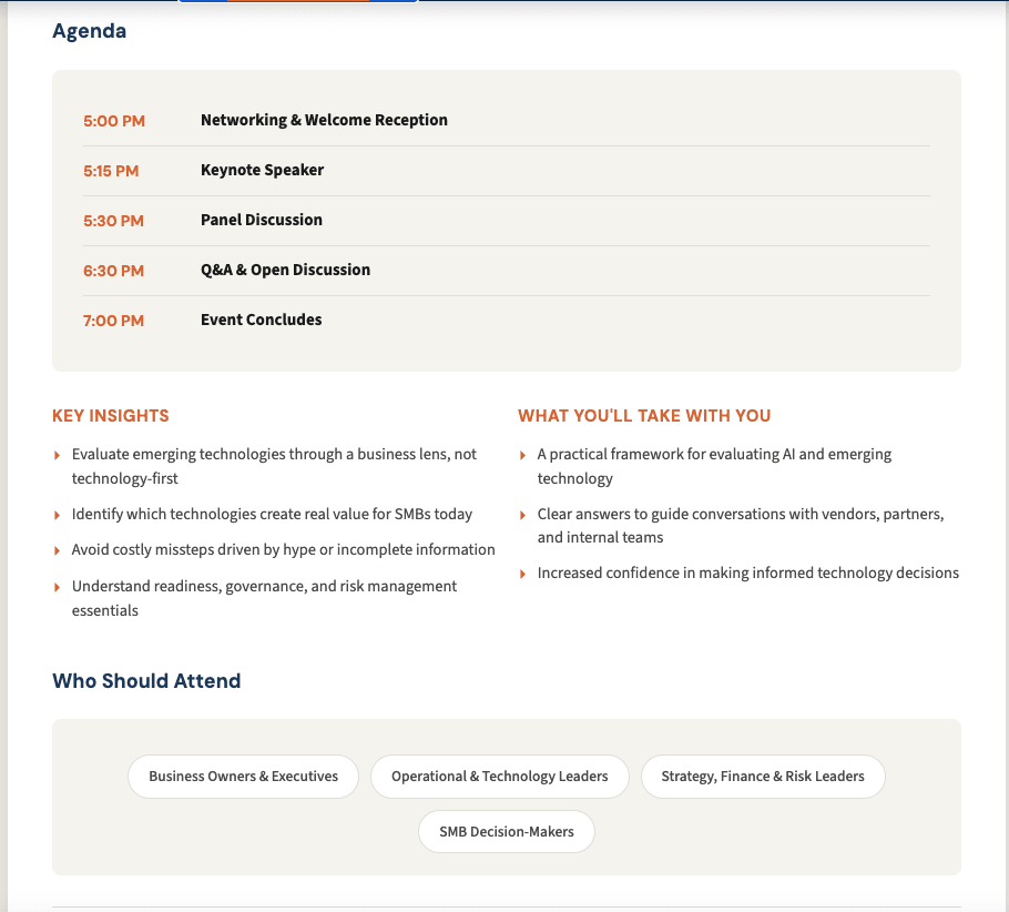 This forum gives business leaders clarity on what actually matters, what's realistic, and how to move forward without unnecessary risk.