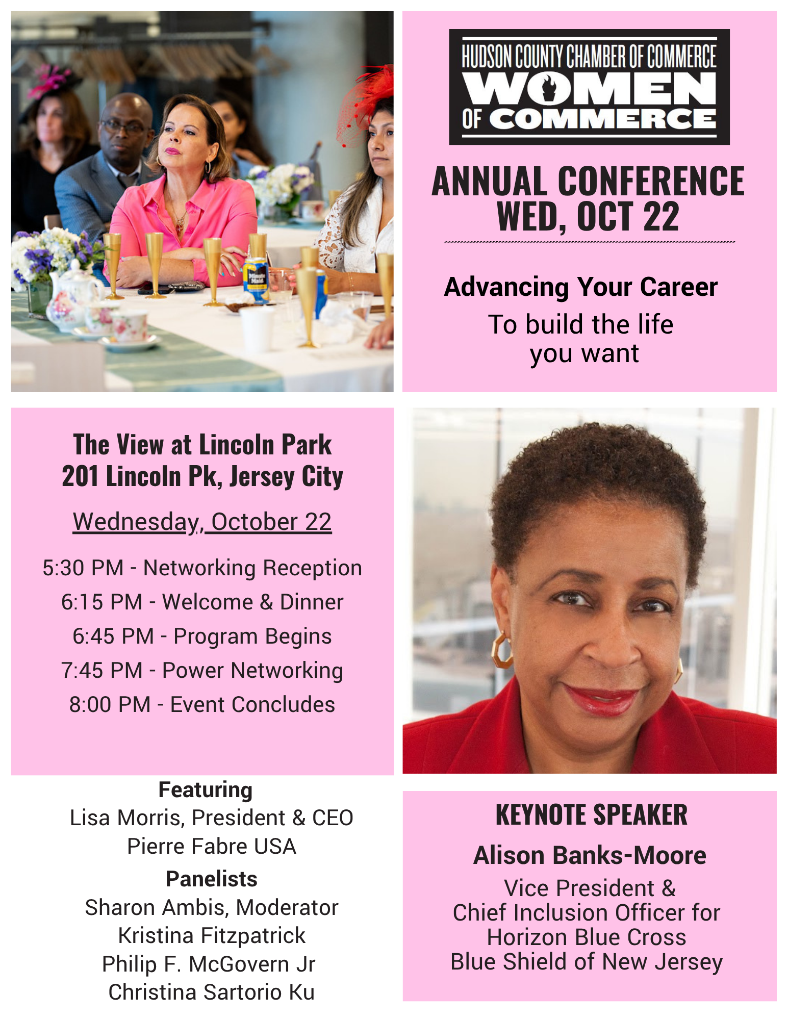 The Women of Commerce Conference is an inspiring and empowering event designed to bring together women leaders, entrepreneurs, and professionals. Women of Commerce is a committee of the Hudson County Chamber of Commerce that empowers women from all industries, sectors, and segments, and their allies, providing leadership, educational programs, professional development opportunities and activities that serve women in business.